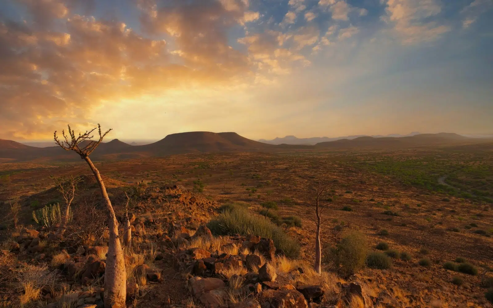 Départ en direction de Twyfelfontein, célèbre pour ses peintures et gravures rupestres bochimanes datant de plusieurs milliers d’années. En route, vous pourrez vous arrêter à un marché de pierres tenu par des femmes Herero. Installation à votre campement et temps libre pour profiter du site.